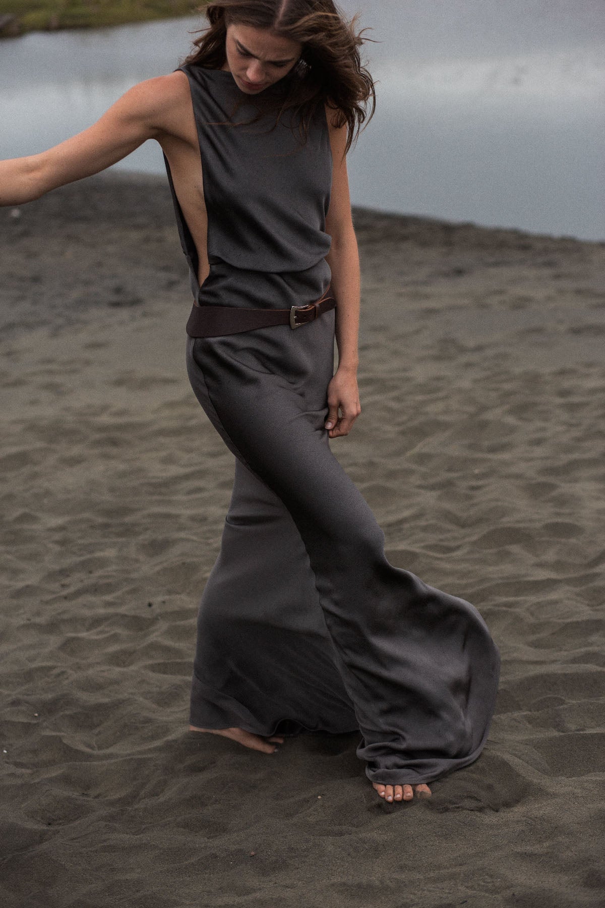 We make a big effort to make everything as easy care as possible here at Knuefermann: our silks can be machine washed on a delicate setting with wool wash and hung in the laundry to dry. A press on a wool setting brings back the sheen.