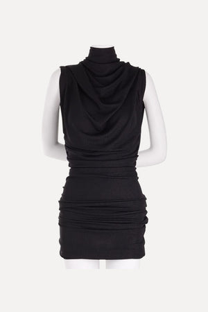 Endless options of how to wear....Super slinky soft flattering knit that can be hitched to mini length easily and adjusted to sit at the neck as you wish.