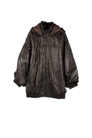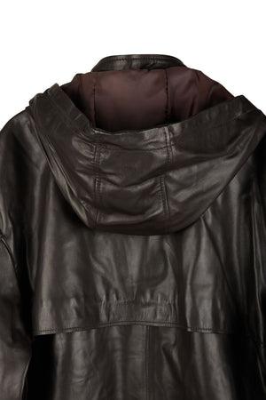HOODED LEATHER JACKET DARKEST BROWN