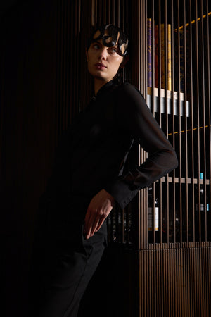 Our classic fitted shirt: If you have owned this cut since our beginnings in 2005 you know this shape is a must have classic for evenings and day alike. We recommend wearing it layered and slightly unbuttoned or knotted for that sexy vibe, otherise go slightly oversized to wear it buttoned. We love this cut!