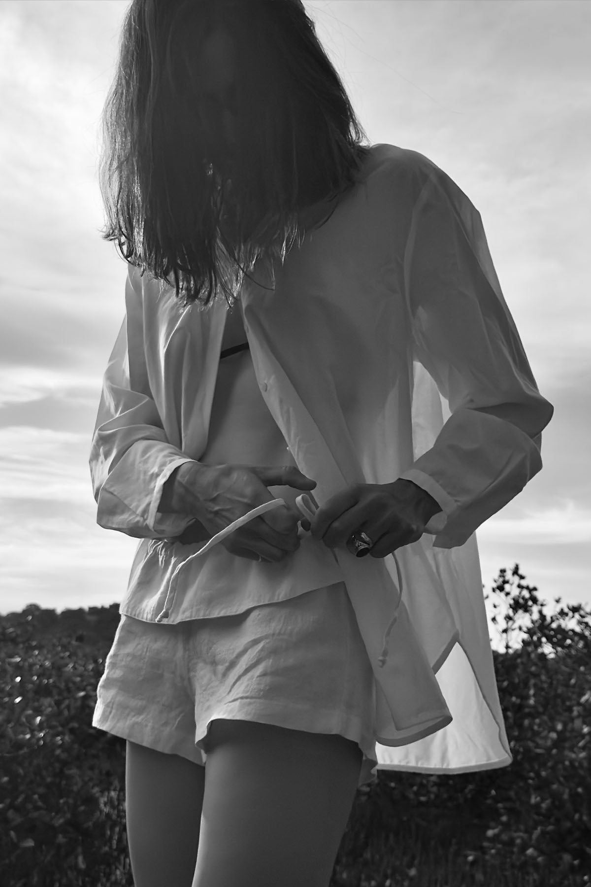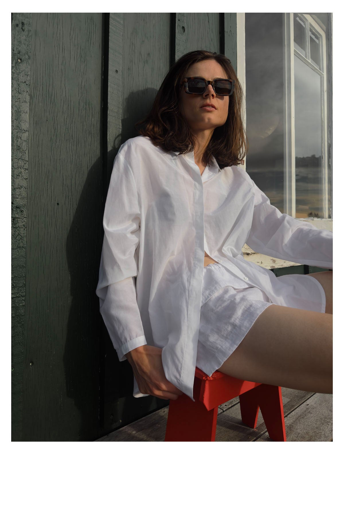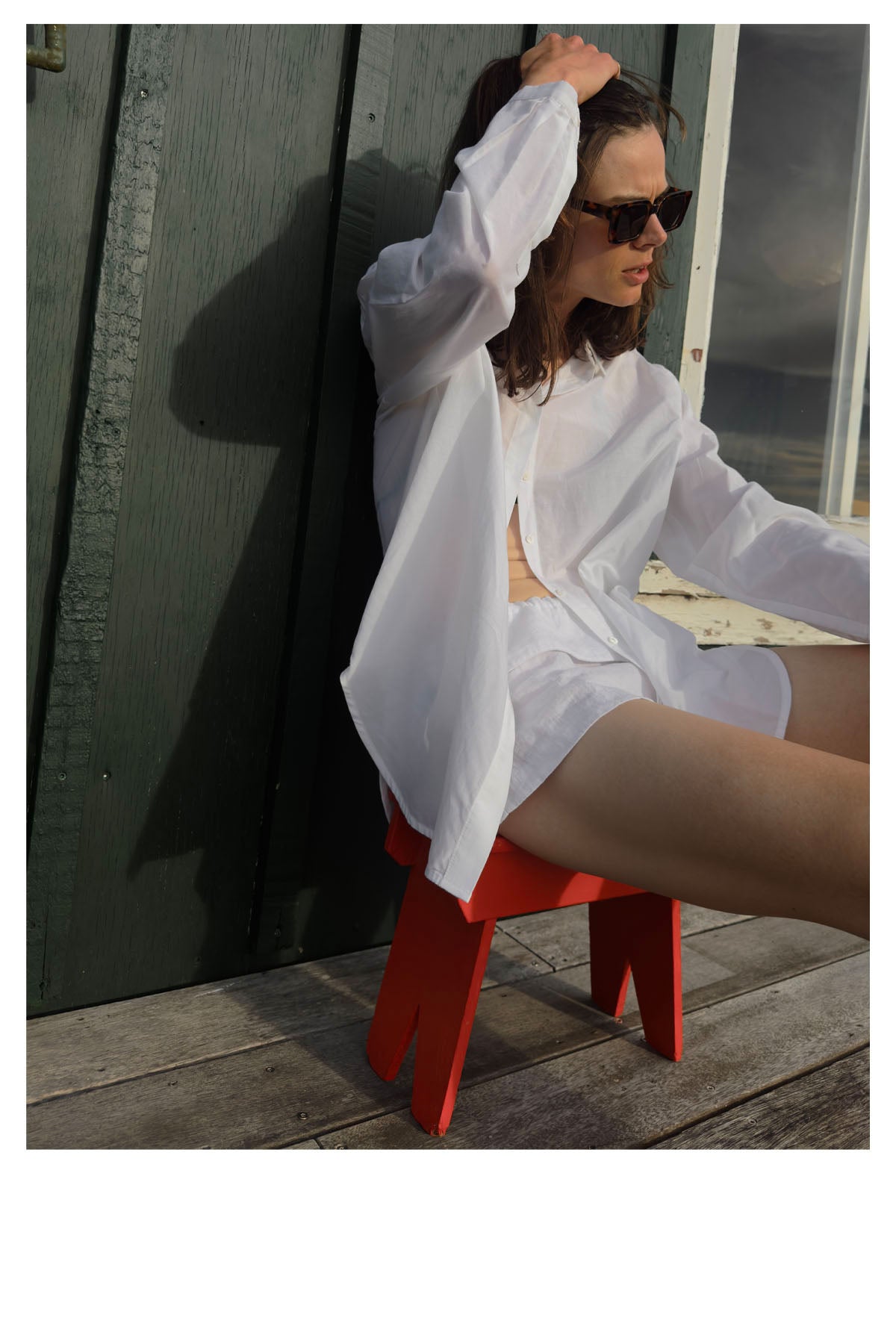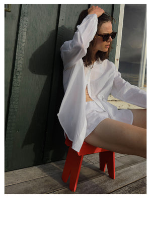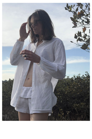 Das weiße Hemd im Männerstil erinnert dezent an die Kleidung des Morgens nach der Nacht davor, an einer Frau sieht ein frisches, weißes Hemd ohne Schneidersitz toll aus.