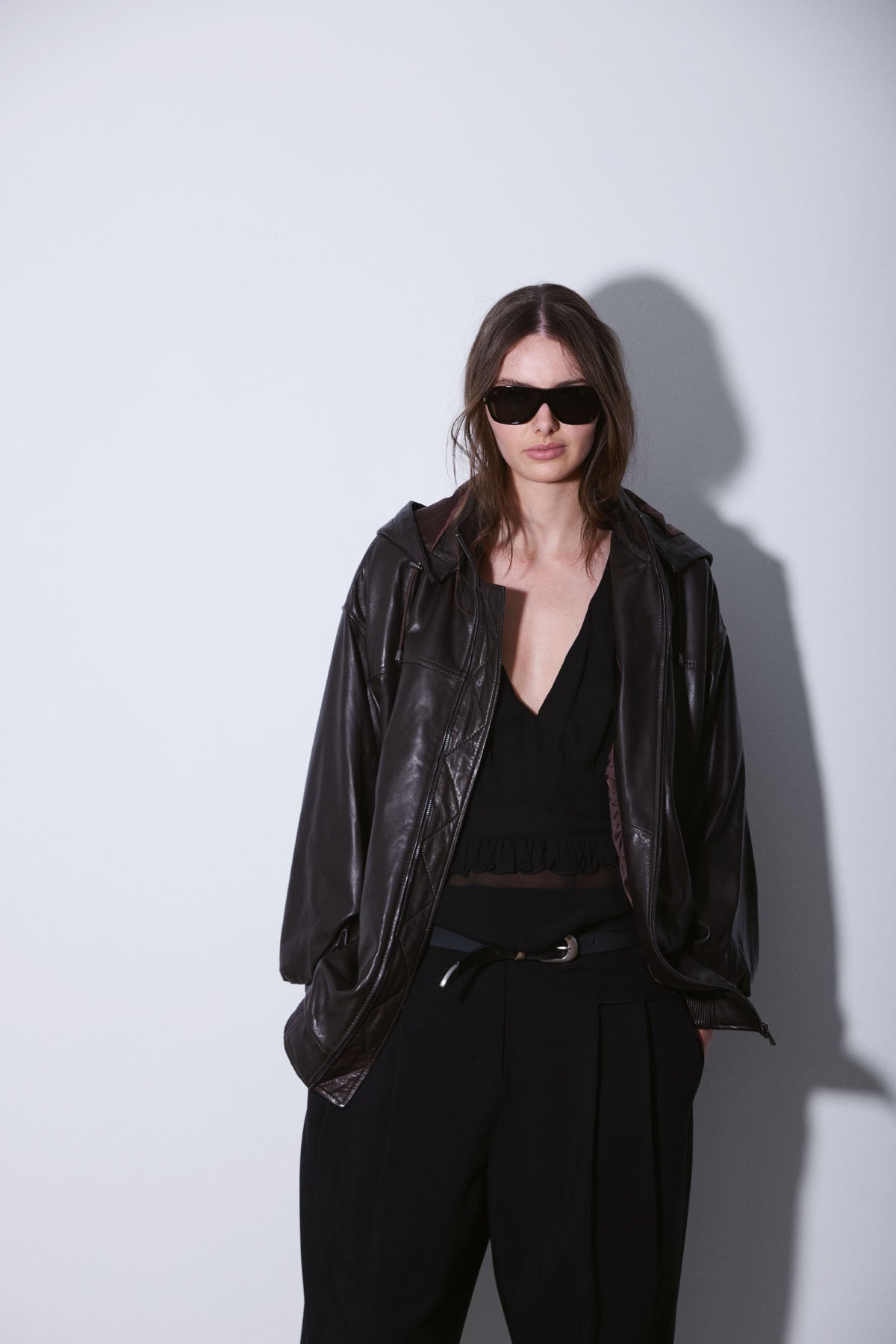 This lambskin jacket is made in Izmir, Turkey, by a boutique family business where leather craftsmanship has been lovingly passed down for generations.
